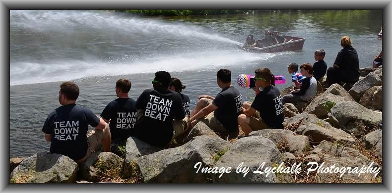 Spectators watch the water battles at the Red Suspender event sponsored by Goodyear Hose Company