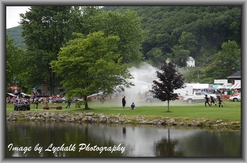 View of water battles sponsored by the Goodyear Hose Company during their Red Suspender events