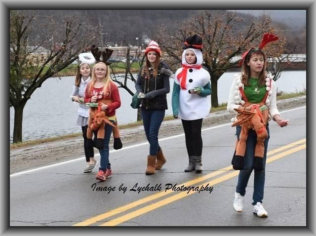 Holiday characters greet the spectators in the parade