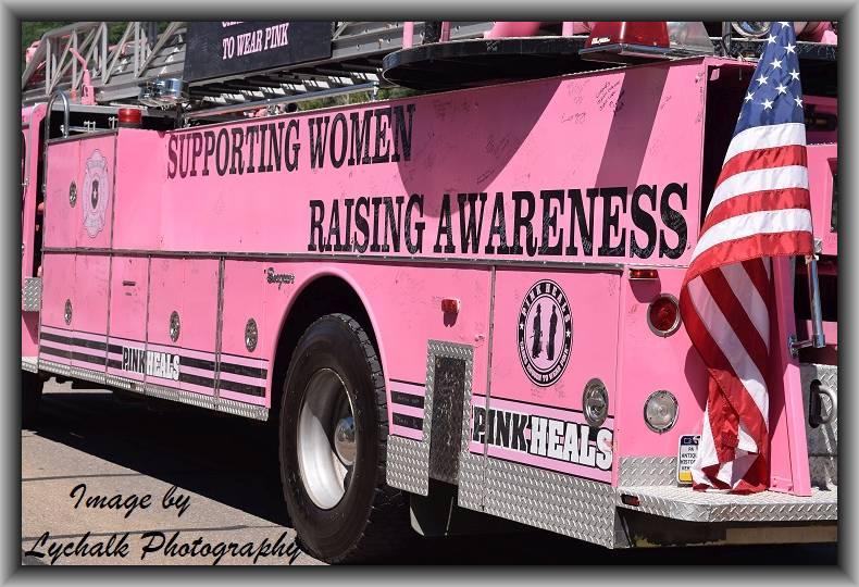 The pink firetruck (not an in-service vehicle) has their message on every side of the unit